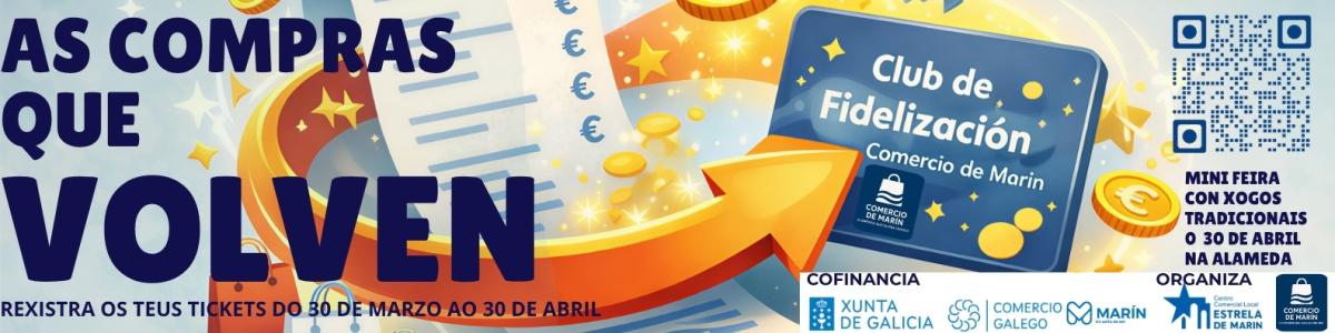 Para beneficiarte das vantaxes do Club de "Comercio de Marín" tan só tes que consumir no comercio local. Podes optar por participar nos sorteos e promocións, e acadar premios e descontos, disfrutar de múltiples vantaxes facéndote socio do club de clientes do comercio local.